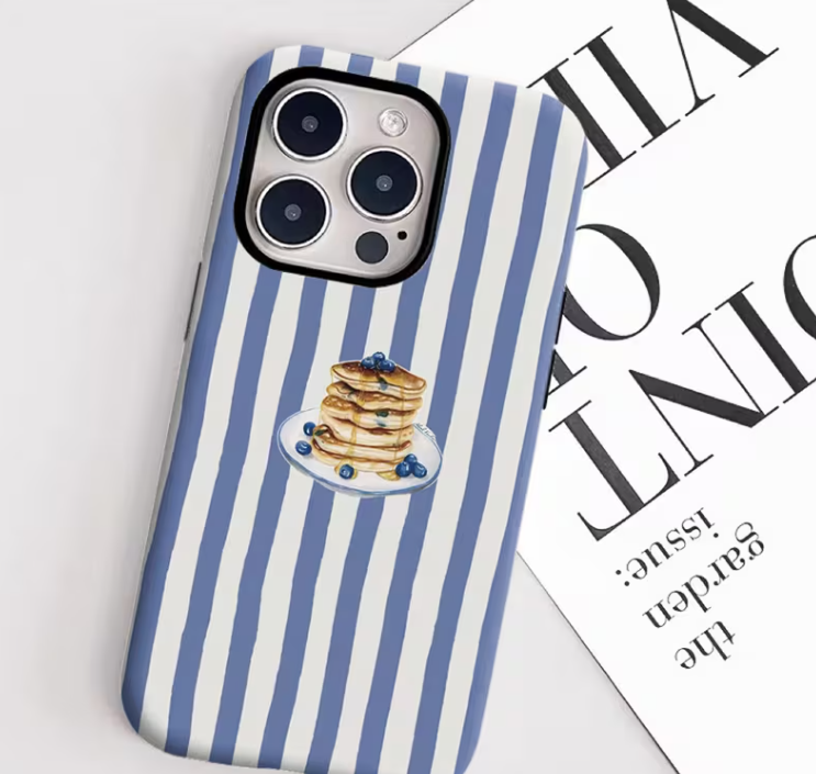 Coque de téléphone - Coque de téléphone à motif de muffin de myrtilles bleu et blanc à rayures.